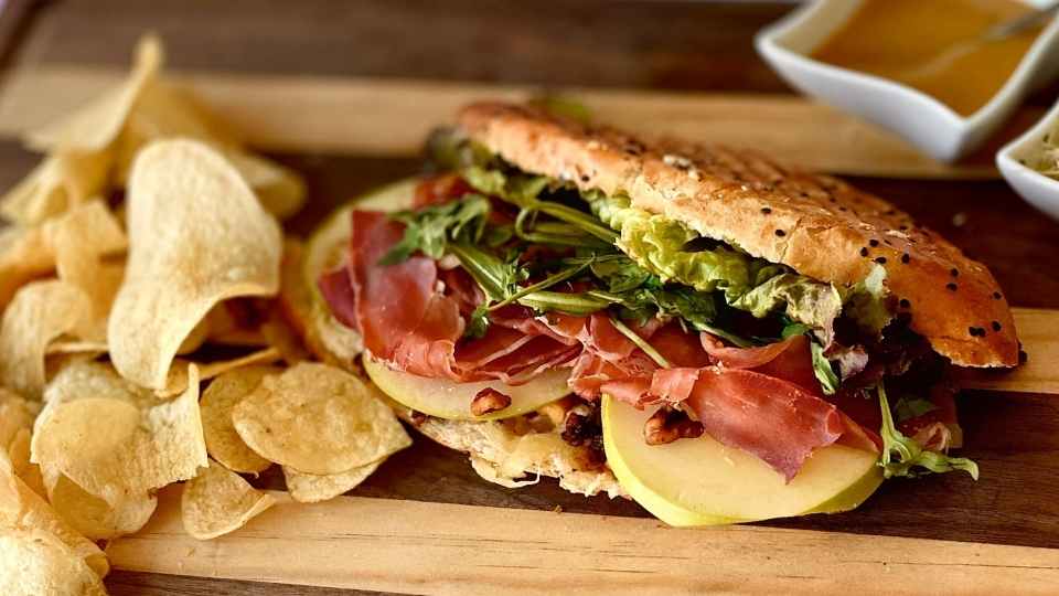 Condimentado con Sal del Himalaya y Pimienta Negra, Queso panela, Aguacate, Jitomate, Germen de alfalfa, Lechuga y Pesto