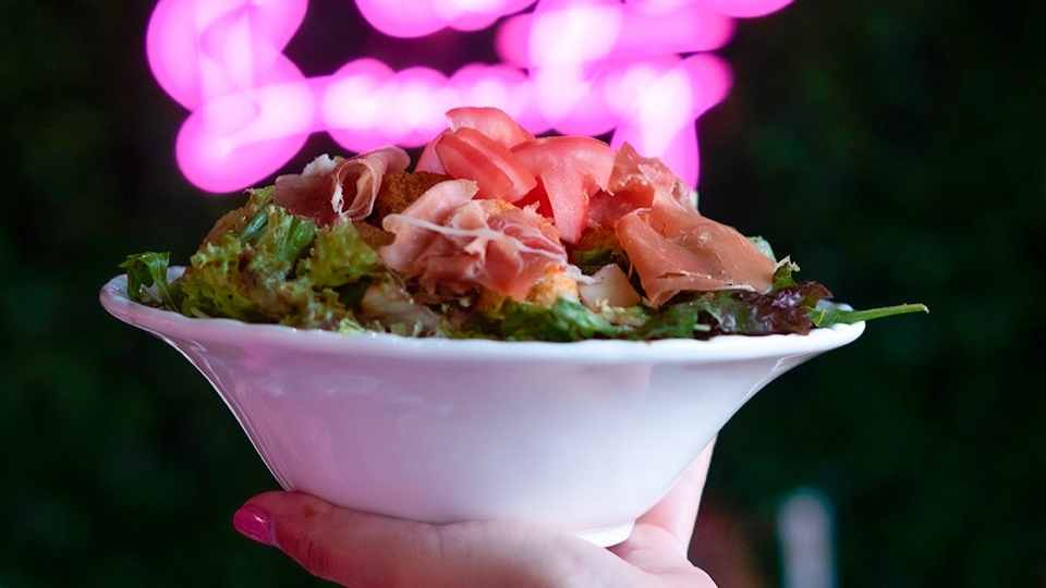 Base de lechuga, arúgula baby y germen de alfalfa., Crutones, Queso Panela o Manchego, Jitomate y Pimienta.